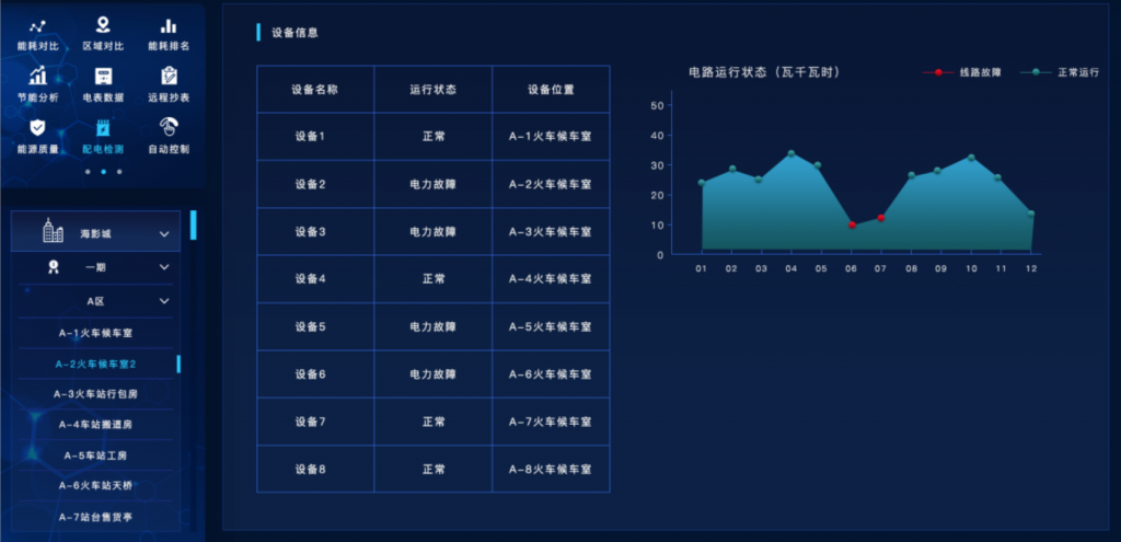 實(shí)現(xiàn)與能耗計(jì)量系統(tǒng)的融合,實(shí)現(xiàn)監(jiān)控各用電支路或用電設(shè)備日、周、月的能耗數(shù)據(jù)、環(huán)比分析各用電支路或用電設(shè)備日、周、月的能耗數(shù)據(jù)、監(jiān)控各用電支路和用電設(shè)備能耗的變化趨勢、關(guān)鍵拐點(diǎn)和異常特征、實(shí)現(xiàn)分項(xiàng)能耗數(shù)據(jù)統(tǒng)計(jì)。 智能電力系統(tǒng)的監(jiān)測管理滿足管理者管理安全管理的需求。包括能耗設(shè)備的開關(guān)控制,能耗系統(tǒng)的電能使用情況趨勢分析、統(tǒng)計(jì)等。